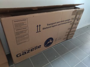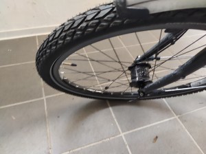 Einen Fahrradkarton besorgte ich mir beim örtlichen Händler und schnitt ihn passend zurecht. Die Radreifen hätten zur Not die Reise noch mitgemacht, aber danach wäre Ersatz fällig gewesen.Also bestellte ich zwei Marathon mondial,etwas schmäler als die alten.Die alte Breite gibts anscheinend nicht mehr zur Zeit.( Inzwischen habe ich den Reifen in Laufrichtung ummontiert, danke Barbara).