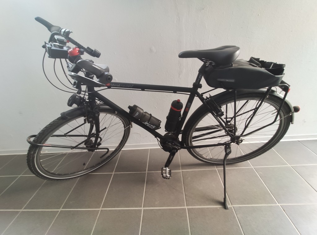 Mein älteres Reiserad,robust und zuverlässig mit Rohloffnabe.Mit ihm habe ich alle längeren Radtouren gemacht.
